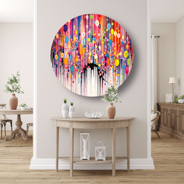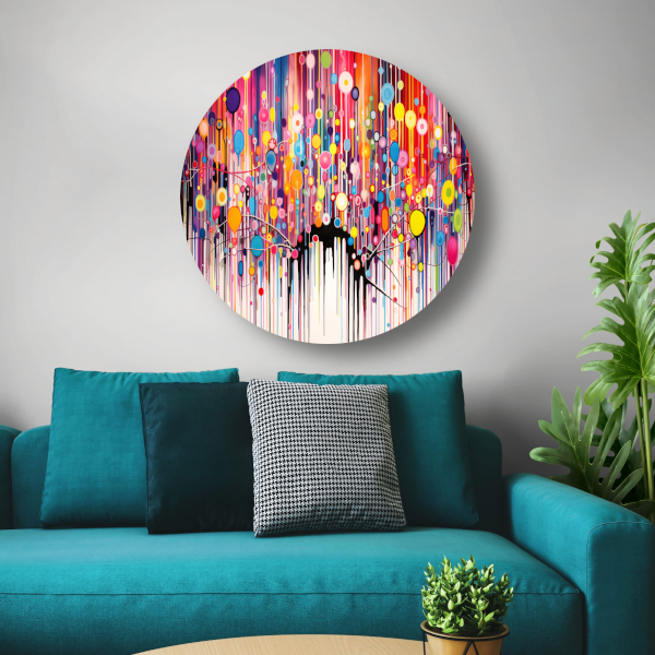 Kleurrijke cirkelcompositie aluminium muurcirkel
