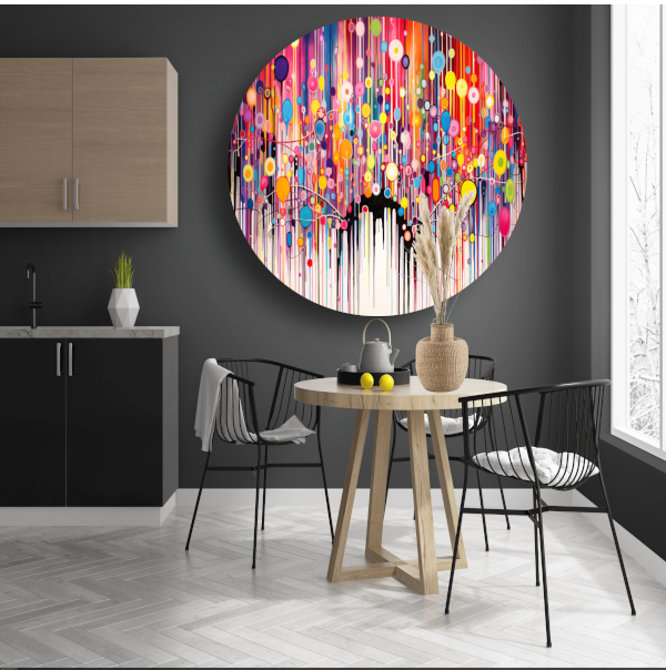 Dibond, ook wel aluminium, is een stevig en duurzaam materiaal met een prachtige, strakke afwerking. De muurcirkel heeft een dikte van 3 mm en is voorzien van een haarscherpe UV-bestendige print, die jarenlang mooi blijft. Dankzij het gladde oppervlak komen kleuren extra intens en levendig naar voren. De muurcirkel wordt standaard met een ophangplaat geleverd.