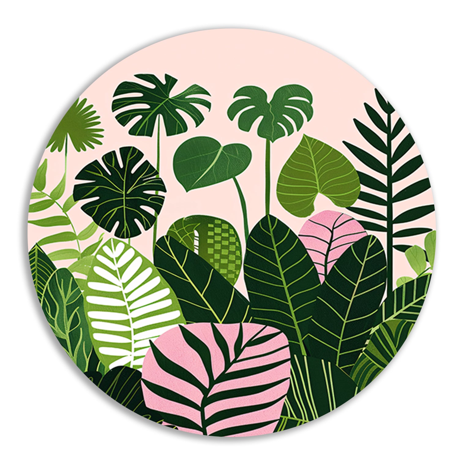 Kleurrijke digitale kunst van bladeren en planten aluminium muurcirkel