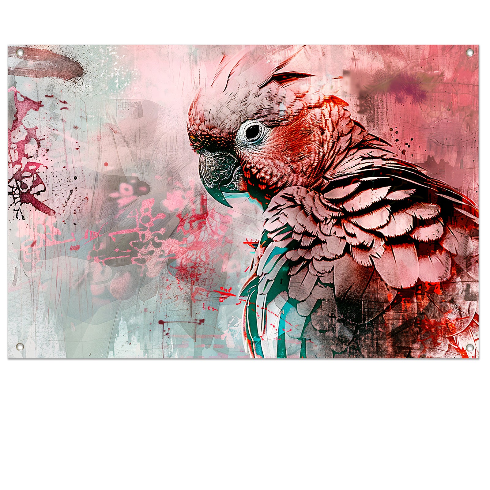 Kleurrijke digitale kunst van een papegaai tuinposter