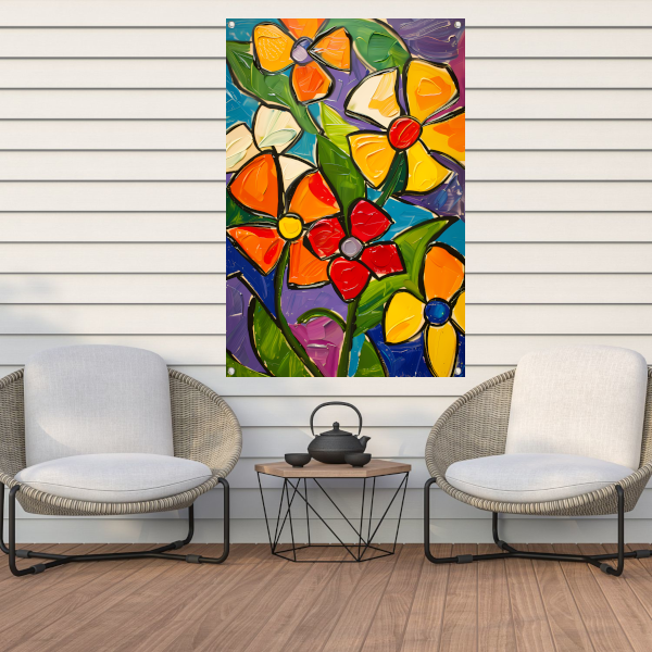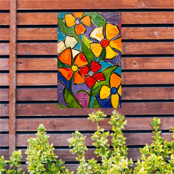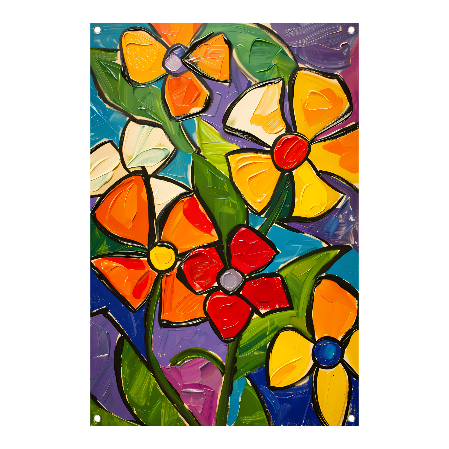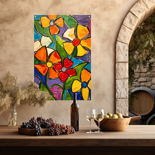 Kleurrijke en abstracte bloemenschilderij met dynamische uitstraling tuinposter