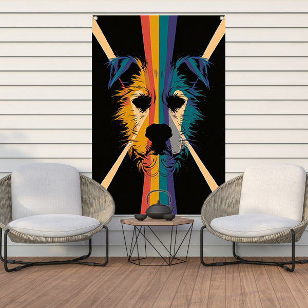 Kleurrijke en abstracte hond in kunstwerk tuinposter