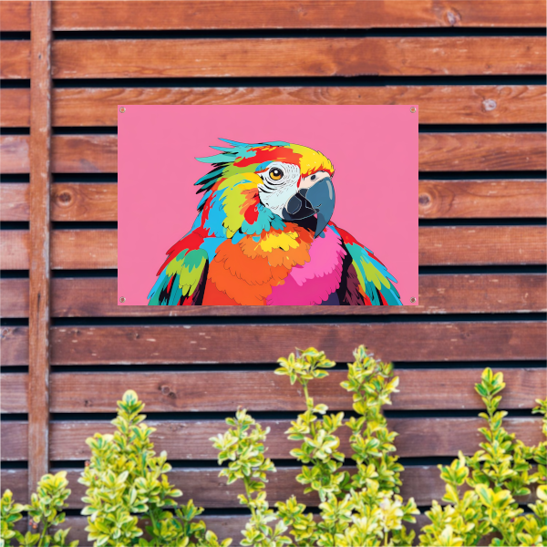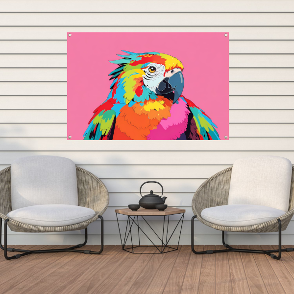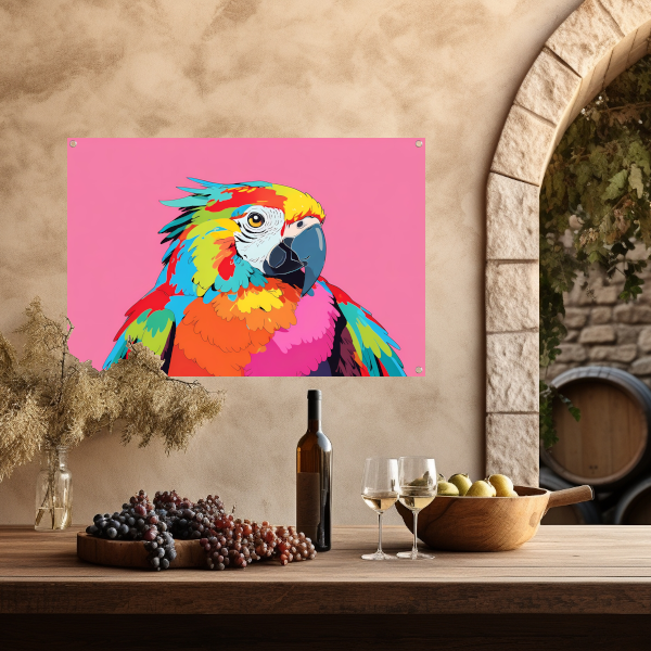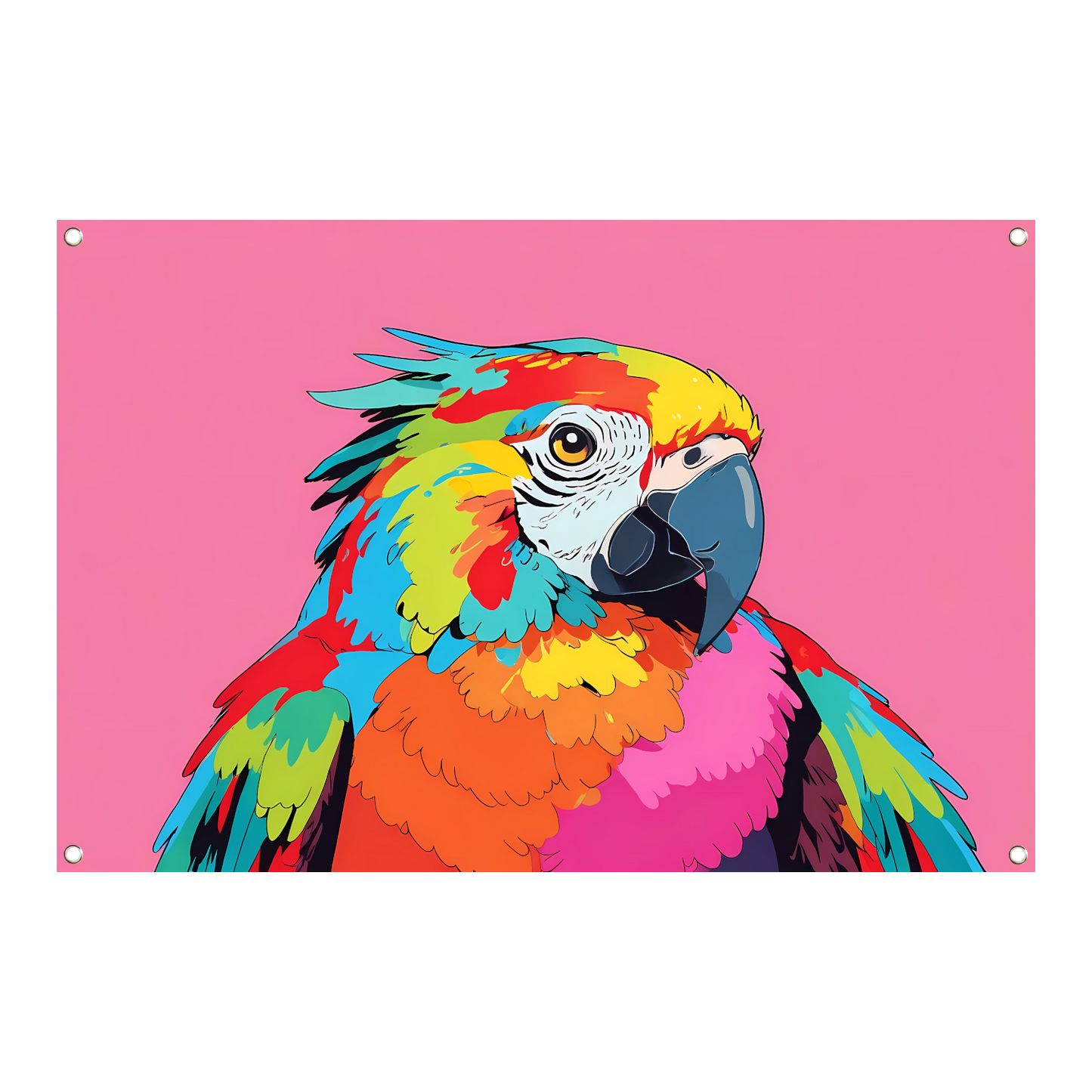 Kleurrijke en moderne popart papegaai schilderij tuinposter