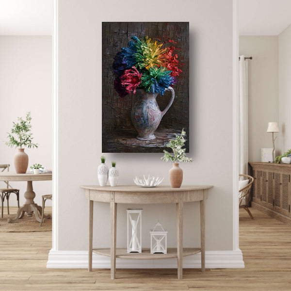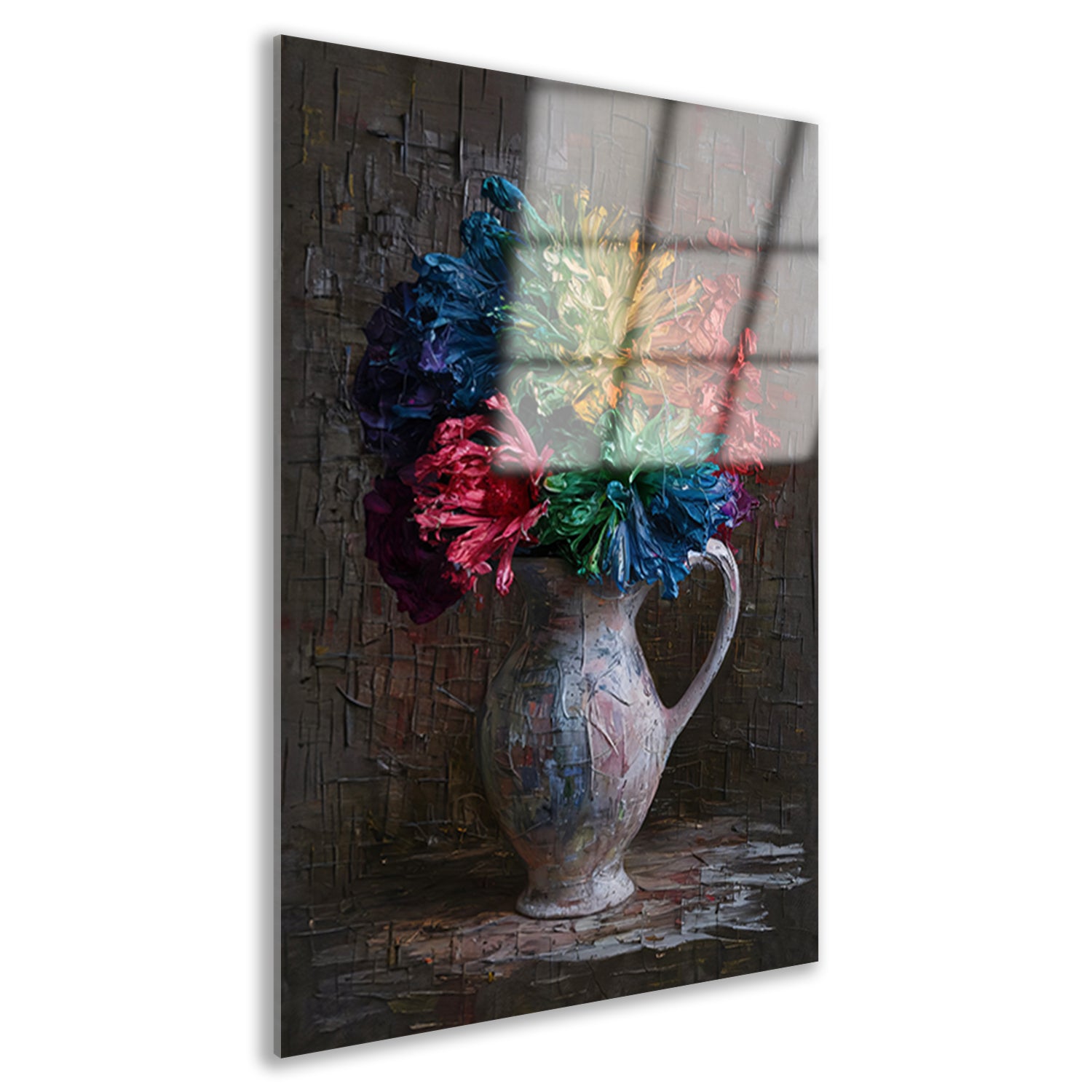 Kleurrijke Impressionistische Bloemen in Elegante Vaas acrylglas