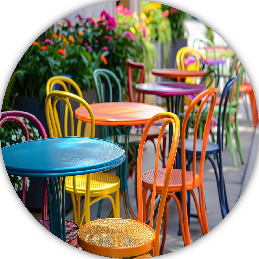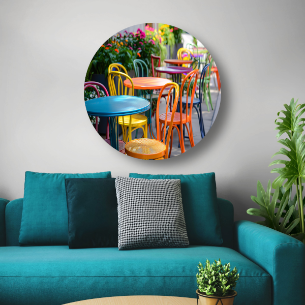 Kleurrijke minimalistische meubels aluminium muurcirkel