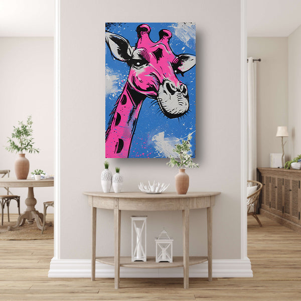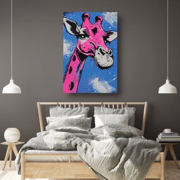 Kleurrijke moderne giraffe op blauwe achtergrond canvas