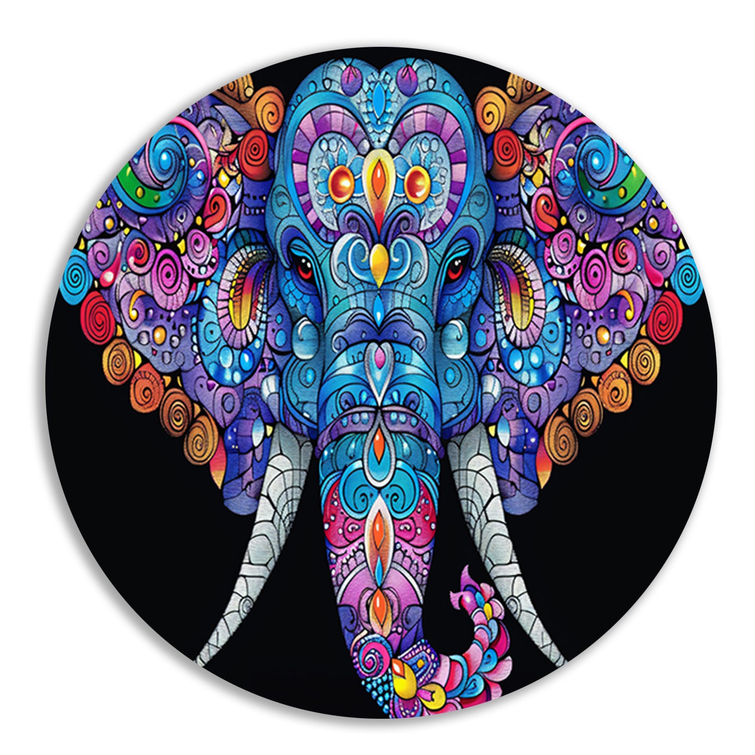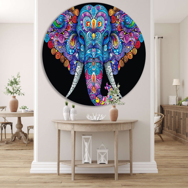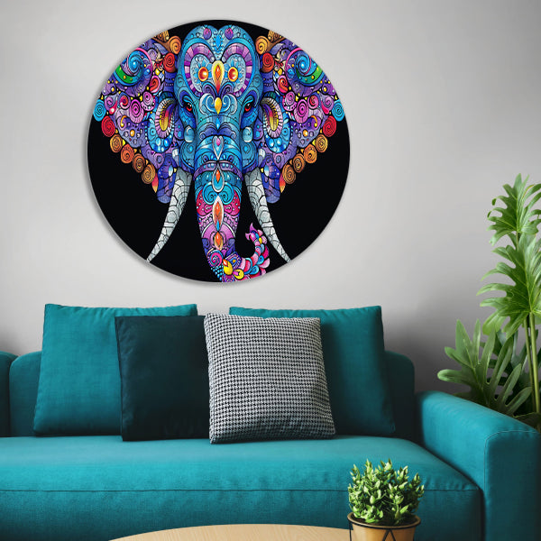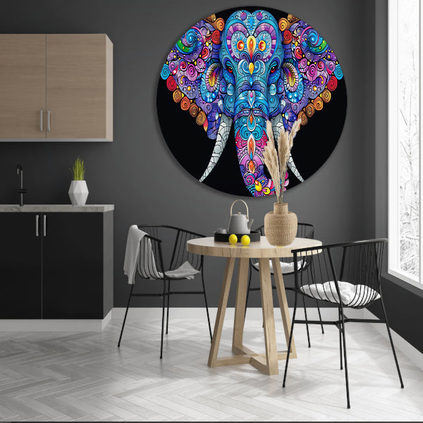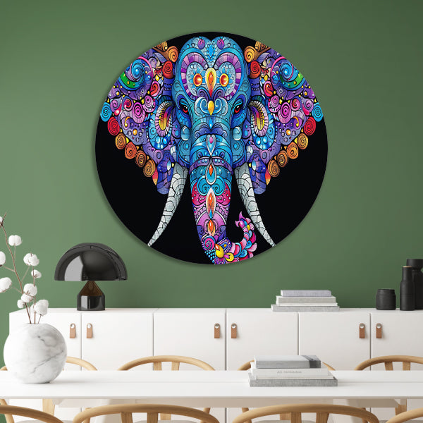 Kleurrijke olifant met gedetailleerde patronen aluminium muurcirkel