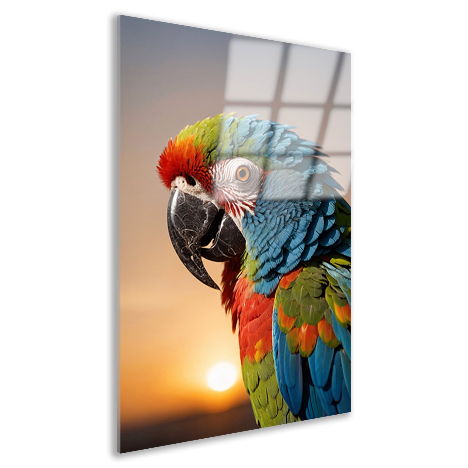 Kleurrijke papegaai bij zonsondergang kunstfoto acrylglas