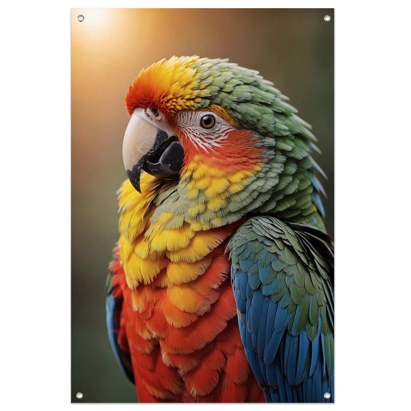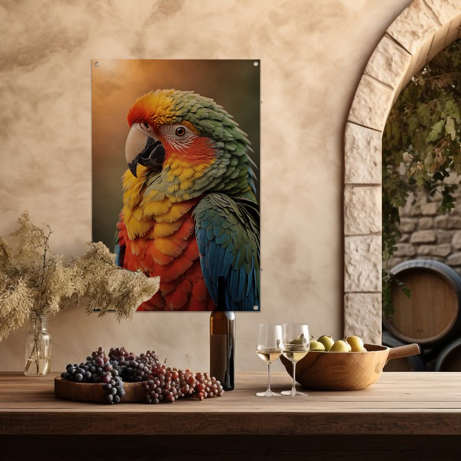 Kleurrijke papegaai bij zonsondergang tuinposter