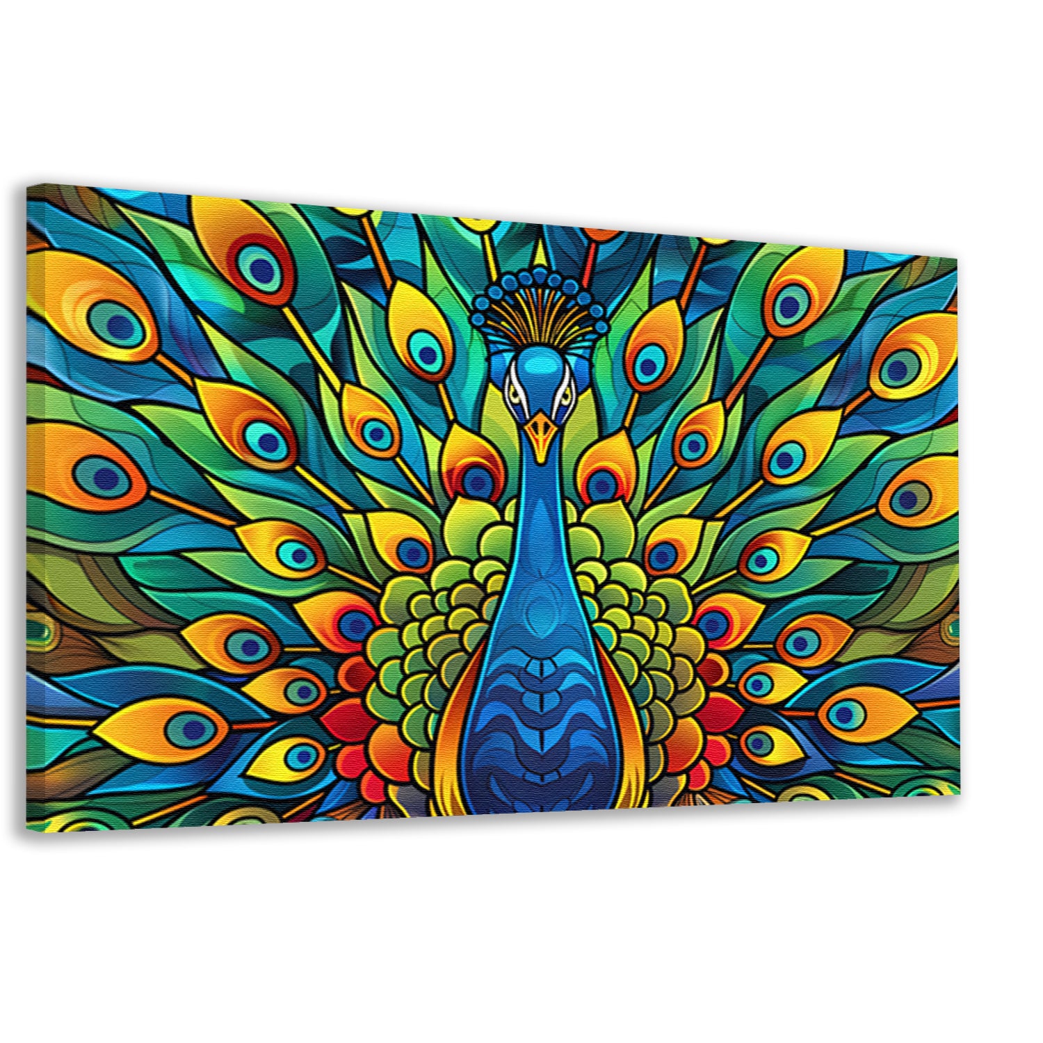 Kleurrijke pauw in glas-in-loodstijl canvas