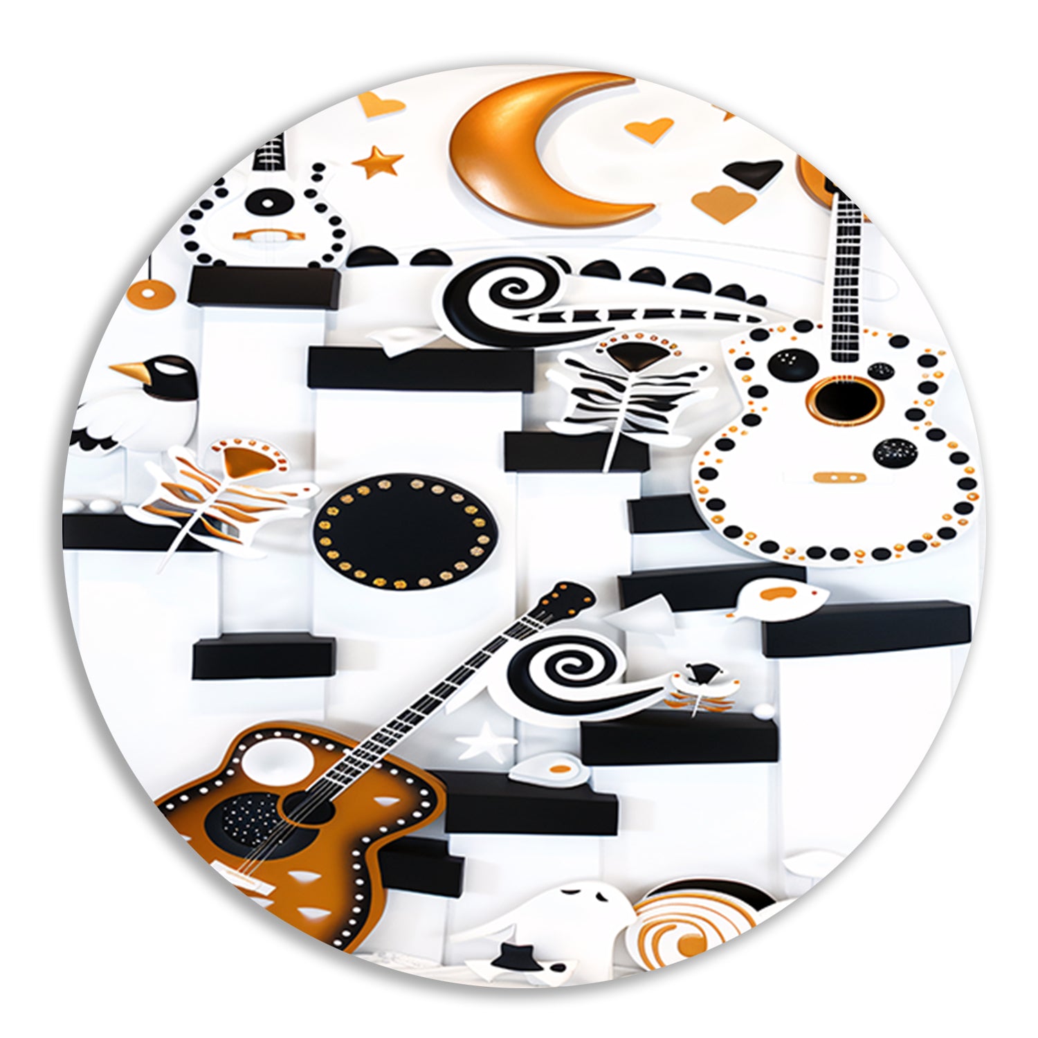 Kleurrijke Pop Art Gitaar met Maan aluminium muurcirkel