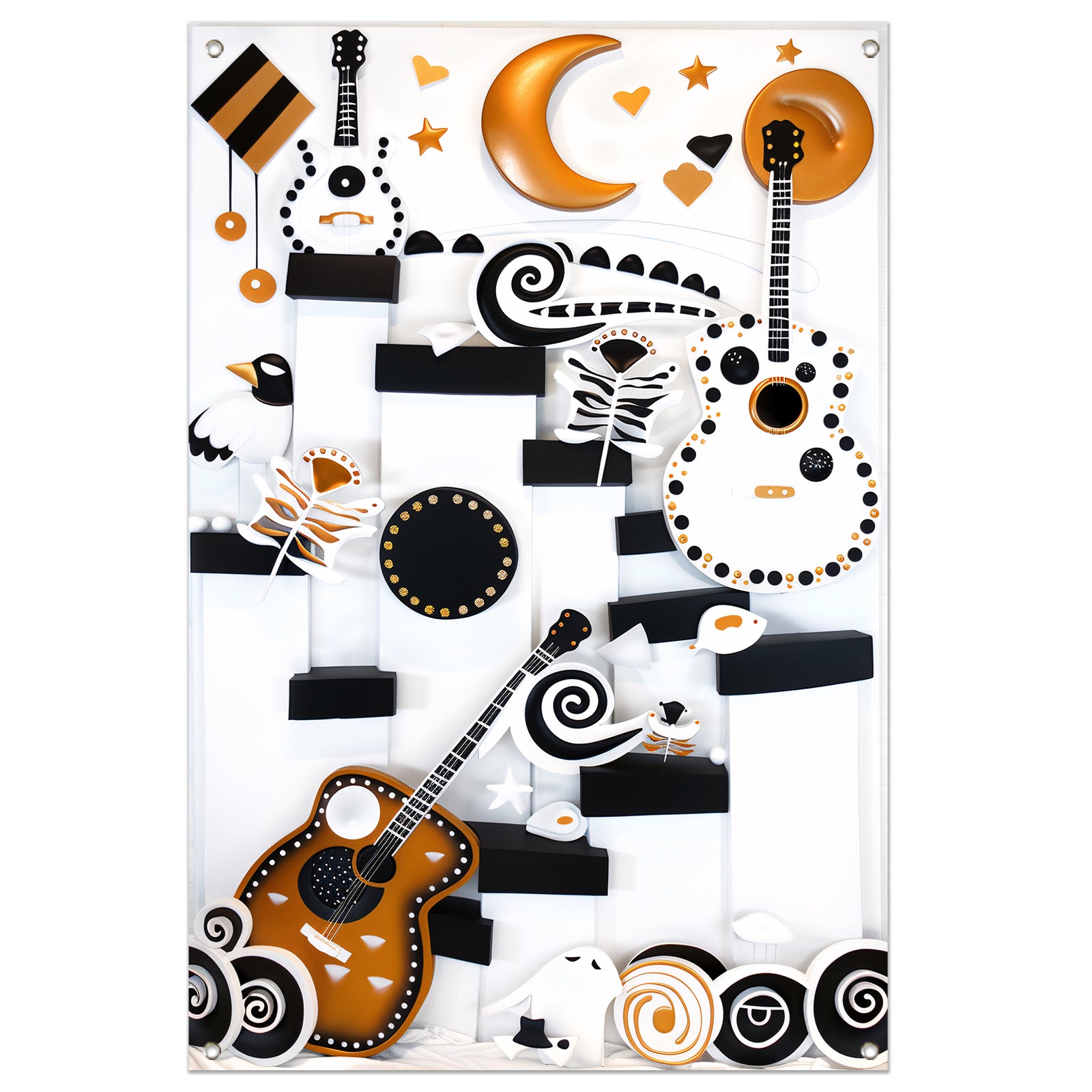 Kleurrijke Pop Art Gitaar met Maan tuinposter