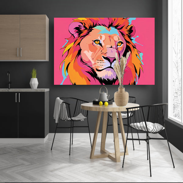 Kleurrijke Pop Art Leeuw op Roze Achtergrond canvas met baklijst