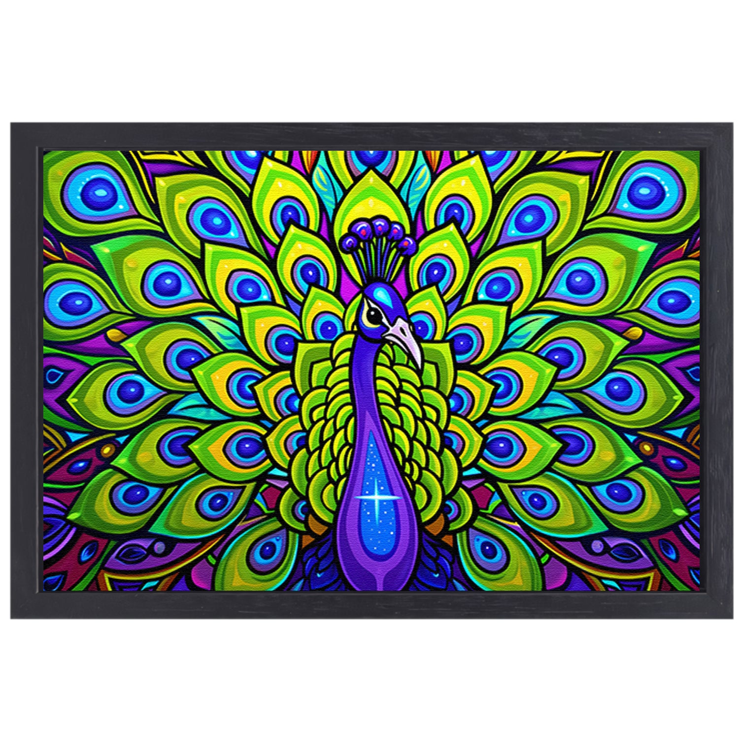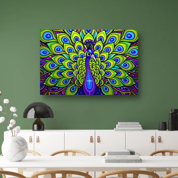 Kleurrijke pop art pauw schilderij canvas met baklijst