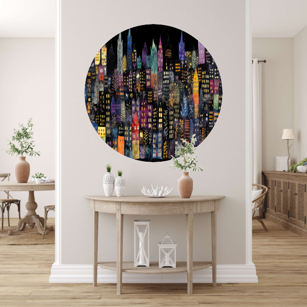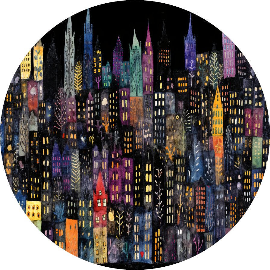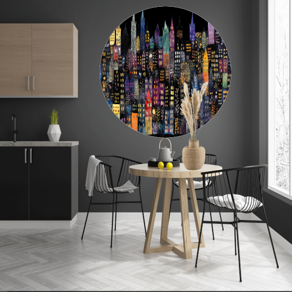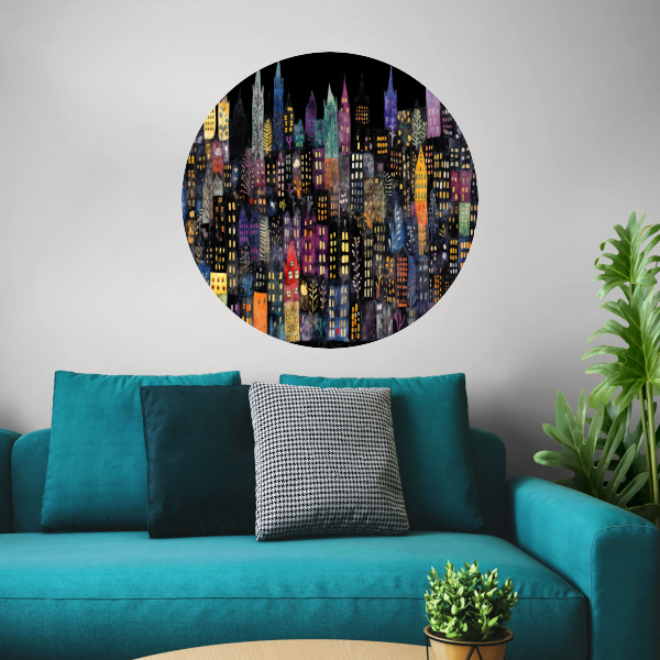 Kleurrijke Stad bij Nacht aluminium muurcirkel