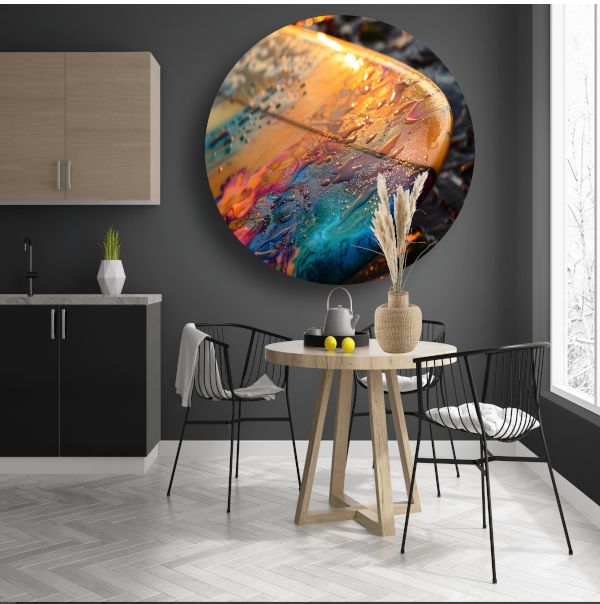 Dibond, ook wel aluminium, is een stevig en duurzaam materiaal met een prachtige, strakke afwerking. De muurcirkel heeft een dikte van 3 mm en is voorzien van een haarscherpe UV-bestendige print, die jarenlang mooi blijft. Dankzij het gladde oppervlak komen kleuren extra intens en levendig naar voren. De muurcirkel wordt standaard met een ophangplaat geleverd.