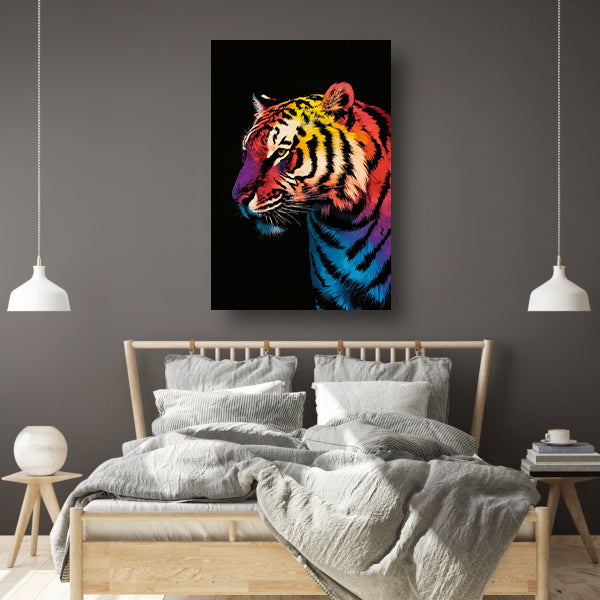 Kleurrijke surrealistische tijger met abstracte details canvas