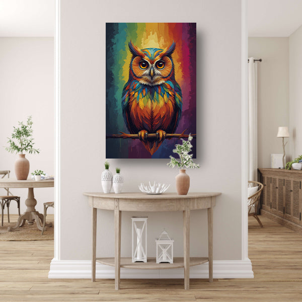 Kleurrijke Uil Abstract Artistiek Ontwerp canvas met baklijst