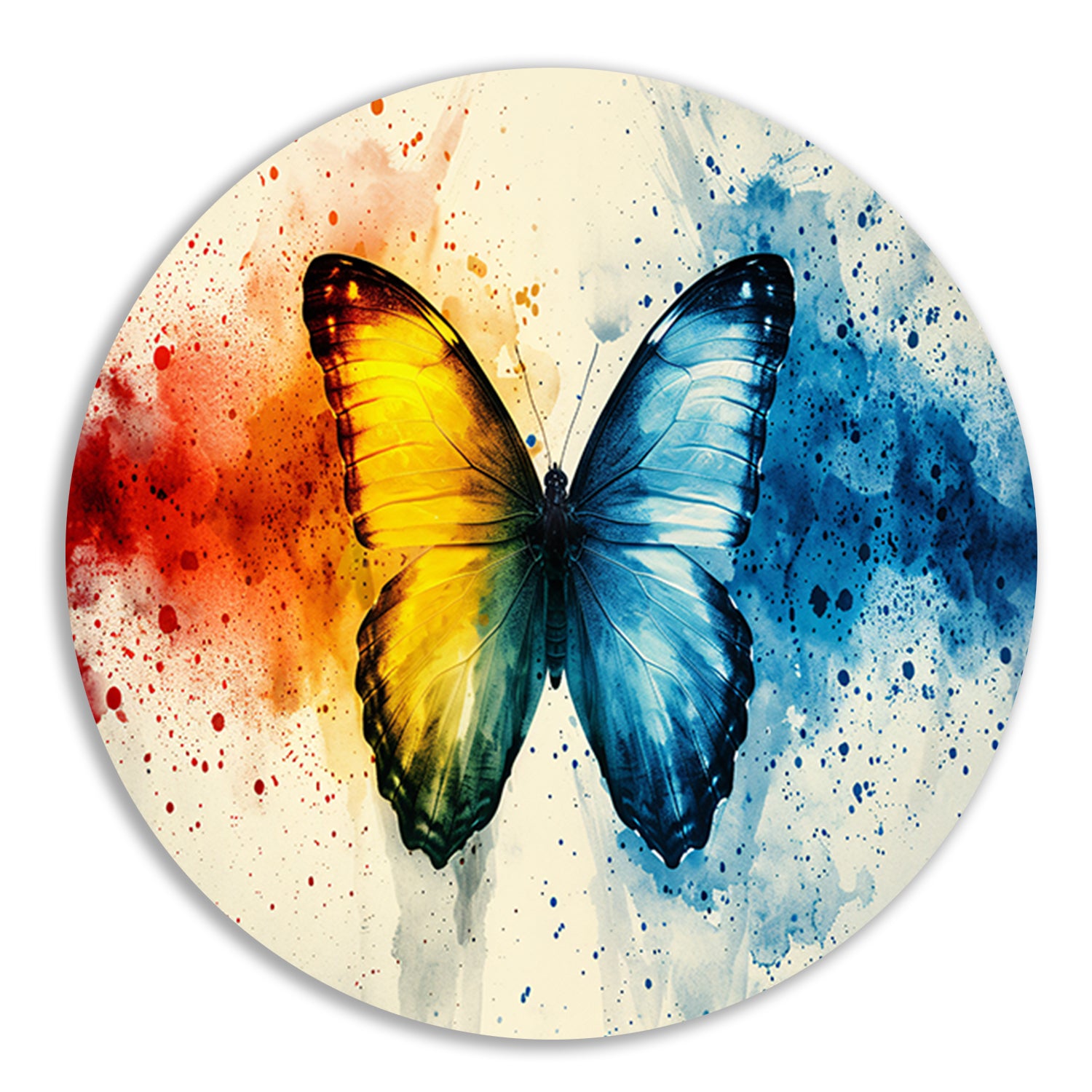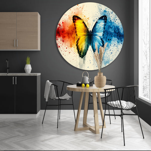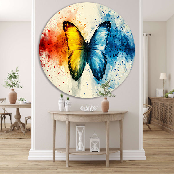 Kleurrijke vlinder met abstracte achtergrond aluminium muurcirkel