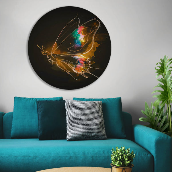 Kleurrijke Vlinder op Donkere Abstracte Achtergrond aluminium muurcirkel