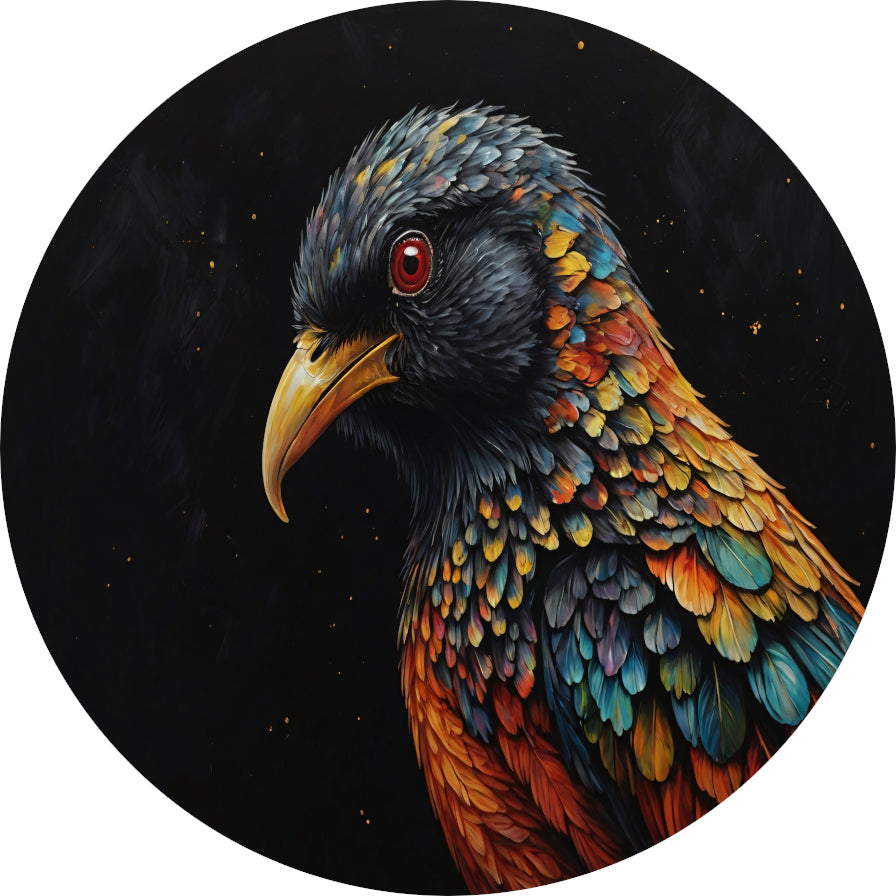 Kleurrijke Vogel tegen Sterrenhemel Achtergrond aluminium muurcirkel