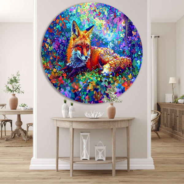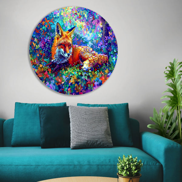 Kleurrijke vos in een magisch landschap aluminium muurcirkel
