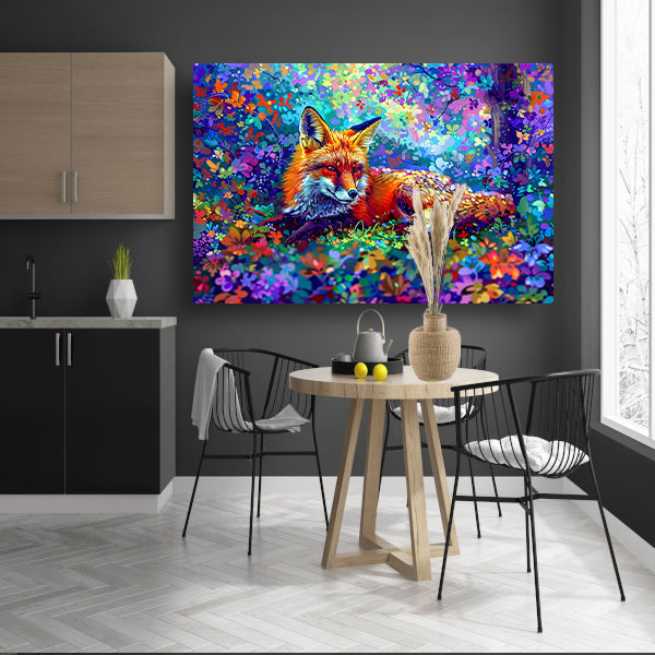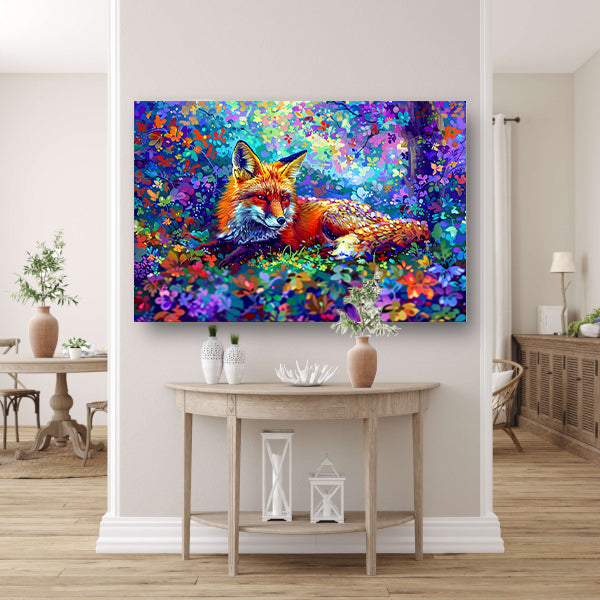 De kleurrijke vos die centraal staat op dit canvas, is meesterlijk afgebeeld en voegt een speelse en levendige sfeer toe aan uw interieur. Het magische landschap eromheen is een feest voor het oog, met een harmonie van kleuren die uw verbeelding prikkelen. Deze unieke combinatie van dieren en scenery zal niet alleen een blikvanger zijn, maar ook een gespreksonderwerp voor elke gast die uw huis bezoekt.