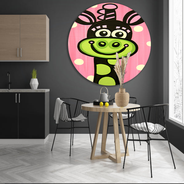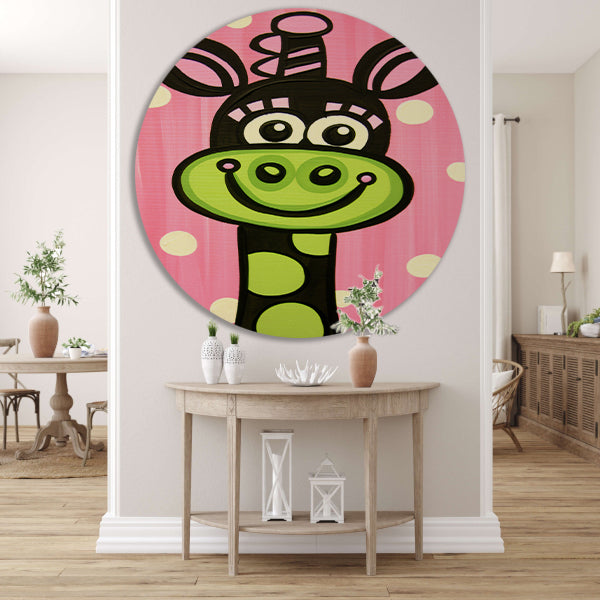 Kleurrijke vrolijke giraffe in popart-stijl aluminium muurcirkel
