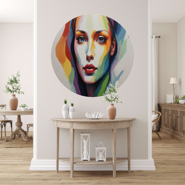 Kleurrijke Vrouwelijke Gratie in Moderne Kunst aluminium muurcirkel