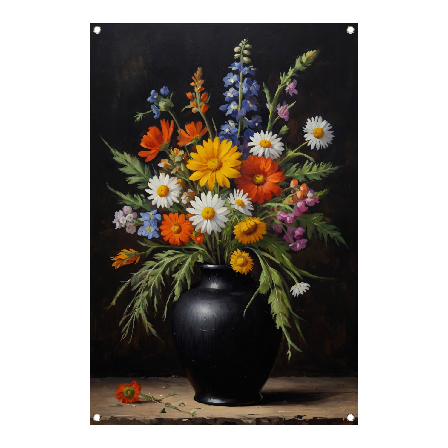 Kleurrijke Wildbloemen in Zwarte Antieke Vaas tuinposter