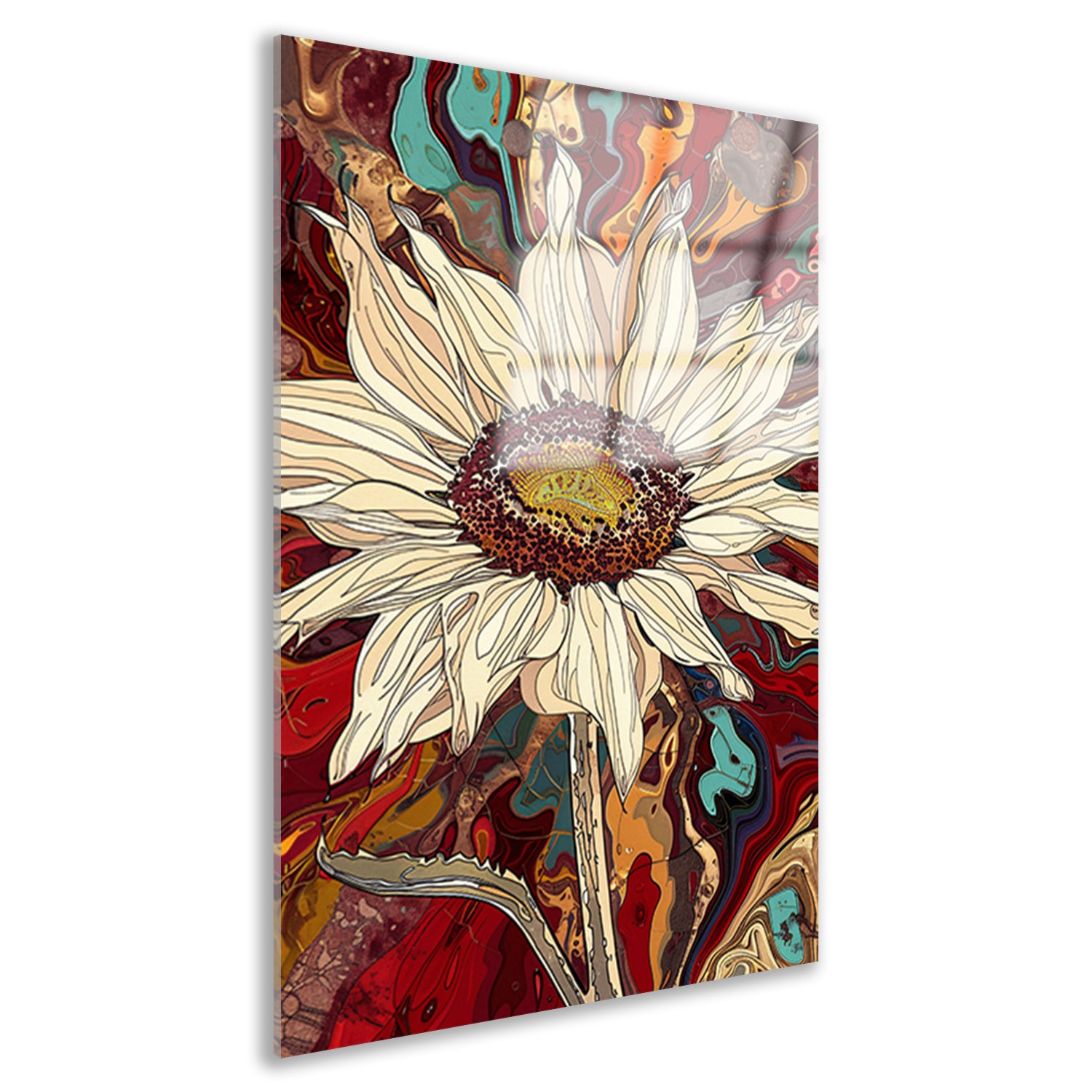 Kleurrijke zonnebloem met psychedelische achtergrond acrylglas
