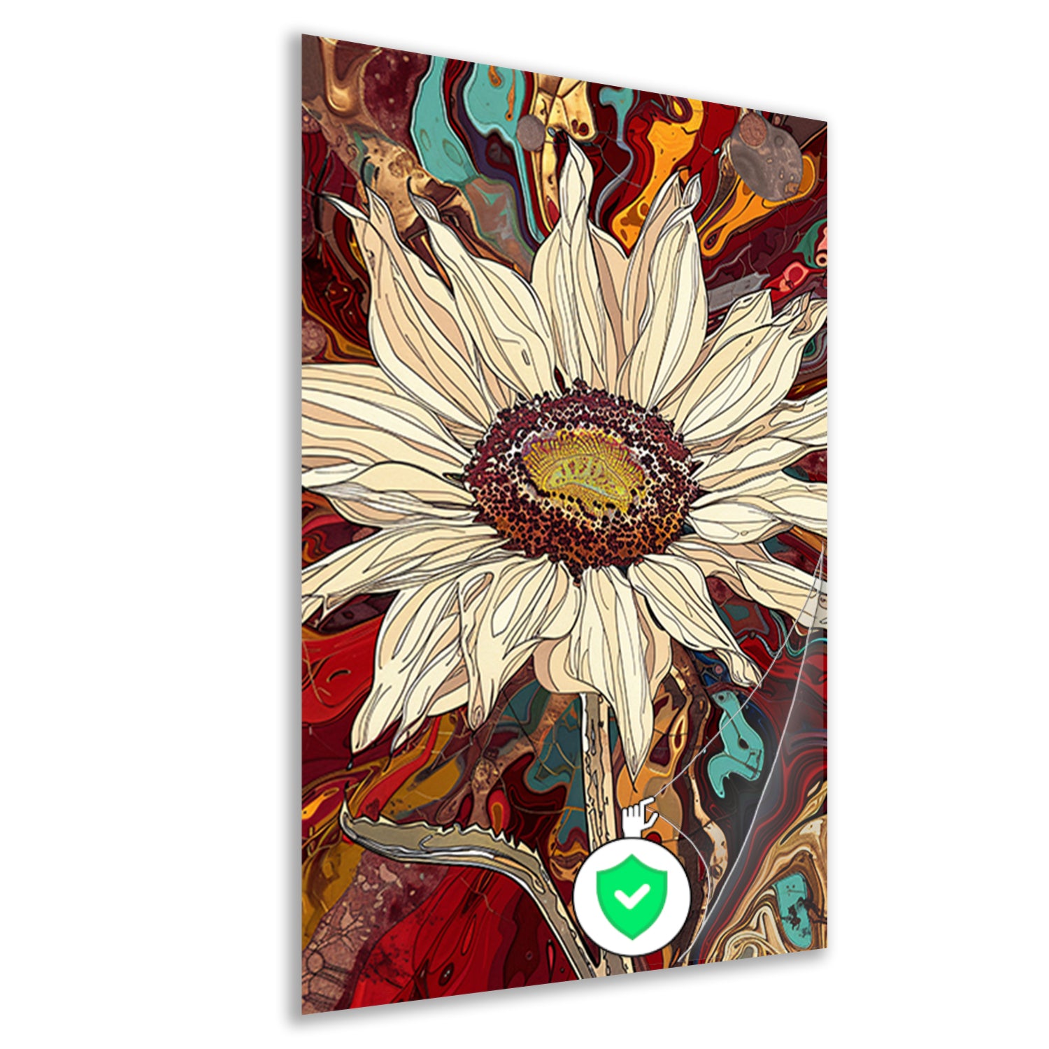 Kleurrijke zonnebloem met psychedelische achtergrond poster