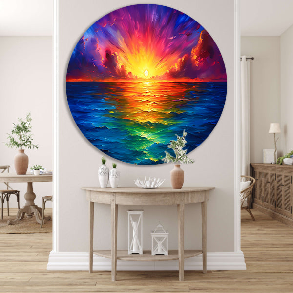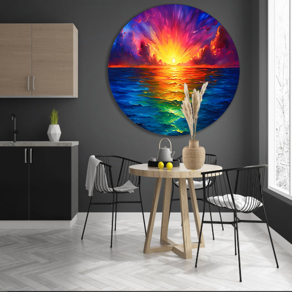 Kleurrijke zonsondergang boven kalme zee forex muurcirkel