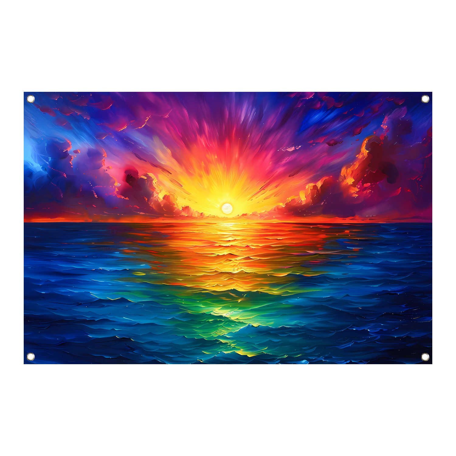 Kleurrijke zonsondergang boven kalme zee tuinposter