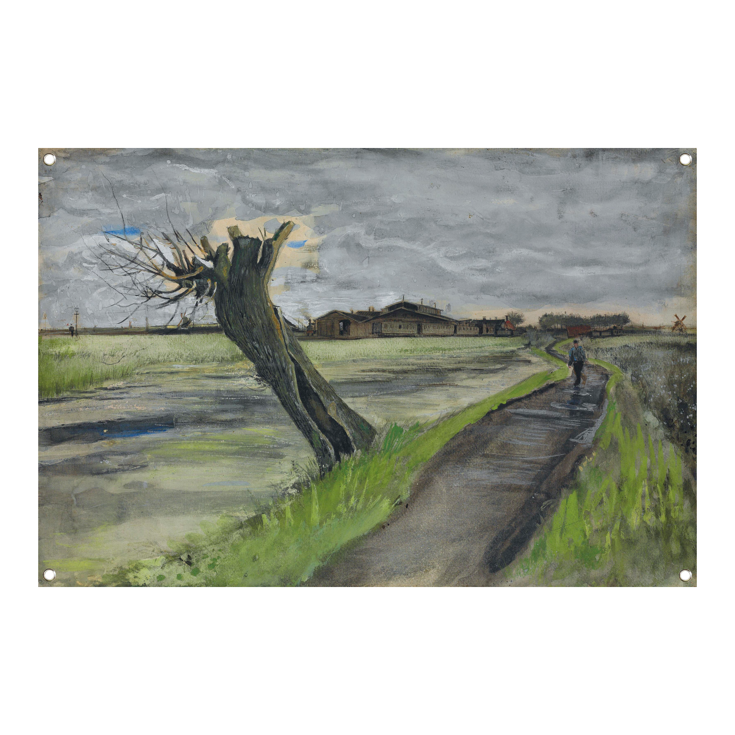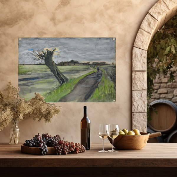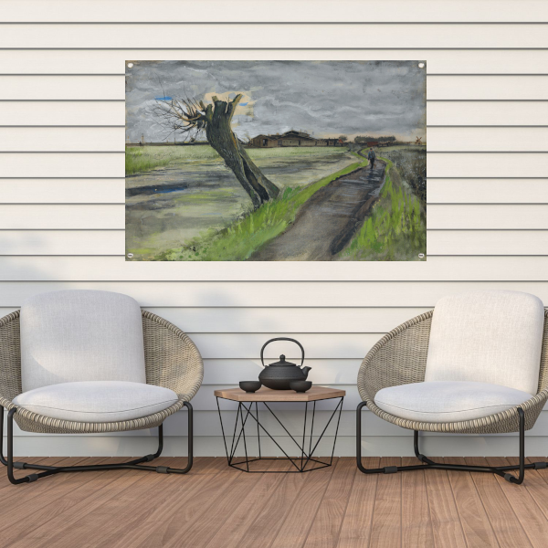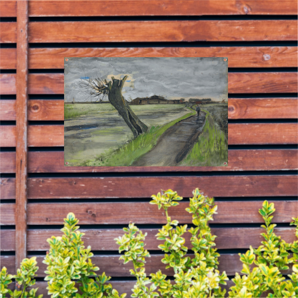 Deze prachtige liggende tuinposter is geïnspireerd op het werk van de beroemde Nederlandse kunstenaar Vincent van Gogh. Het thema van deze tuinposter is de natuur, met als hoofdmotief de karakteristieke knotwilg. De kleuren zijn levendig en geven een vrolijke en natuurlijke uitstraling aan je tuin of balkon. De stijl van deze tuinposter is kenmerkend voor het impressionisme, waar Van Gogh bekend om staat.
