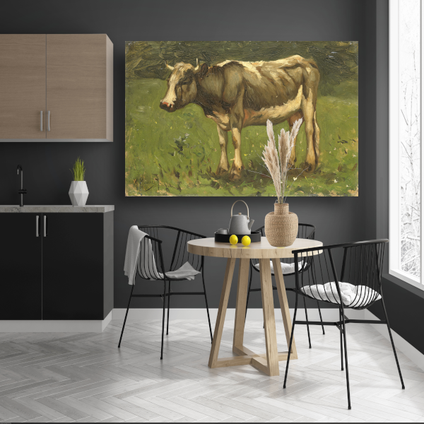 Dit prachtige liggende canvas schilderij, genaamd 'Koe - Anton Mauve', is een eerbetoon aan de Nederlandse kunstenaar Anton Mauve. Het schilderij is verkrijgbaar in verschillende formaten en is een perfecte aanvulling op elk interieur.