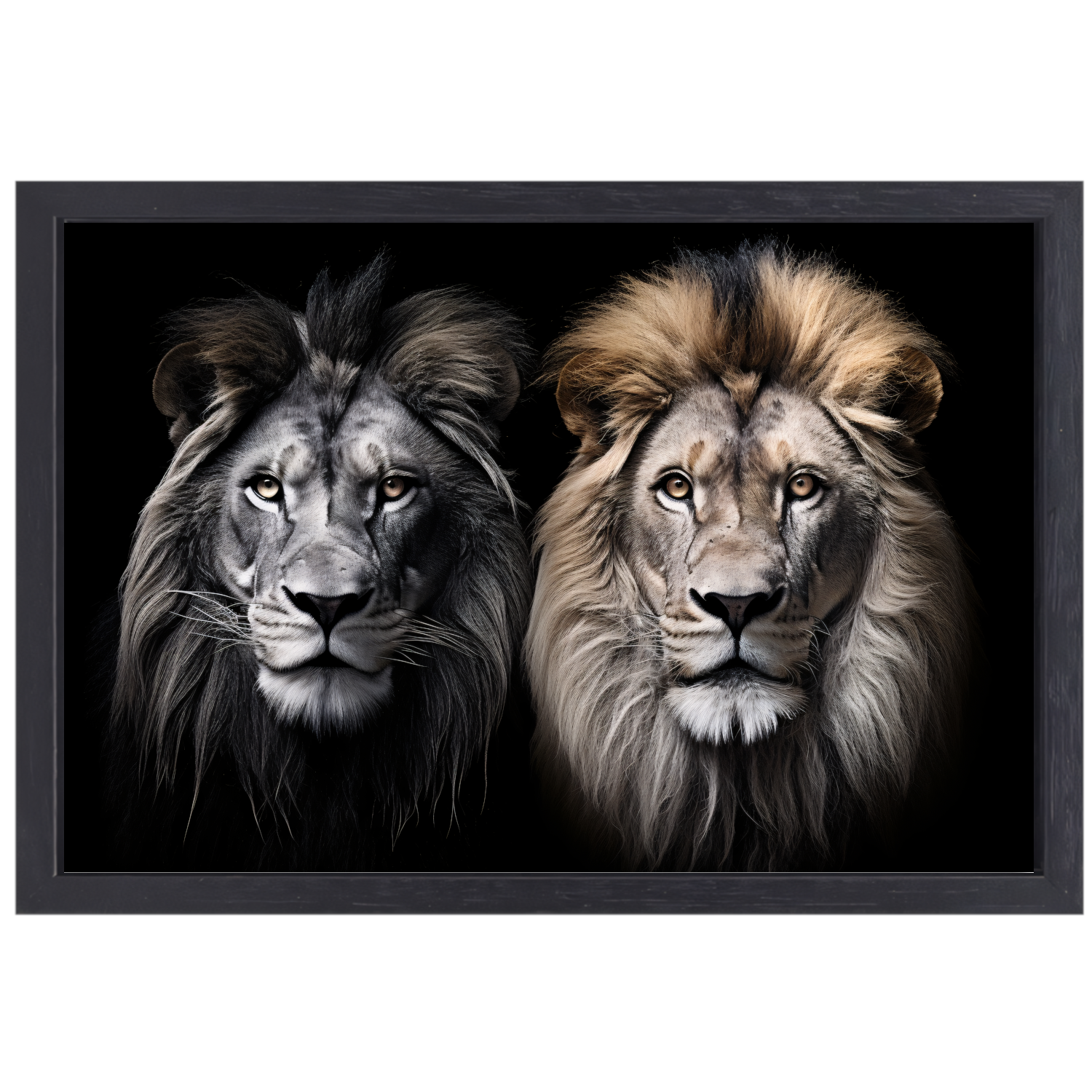 Koninklijke Leeuwen: Een Hyperrealistisch Dubbelportret canvas met baklijst
