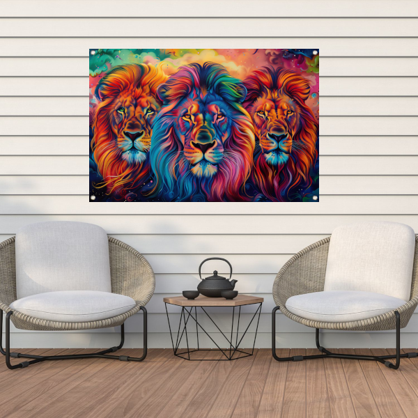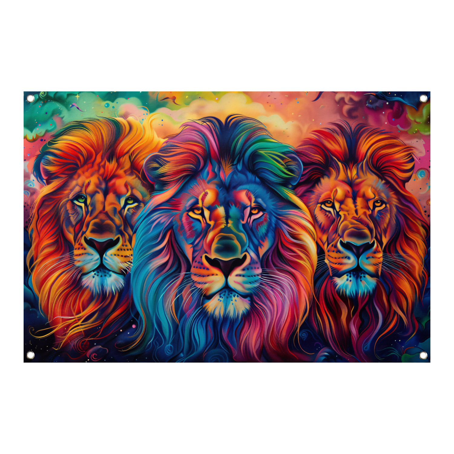 Koninklijke Trots: Drie Leeuwen in de Savanne tuinposter