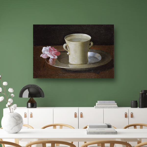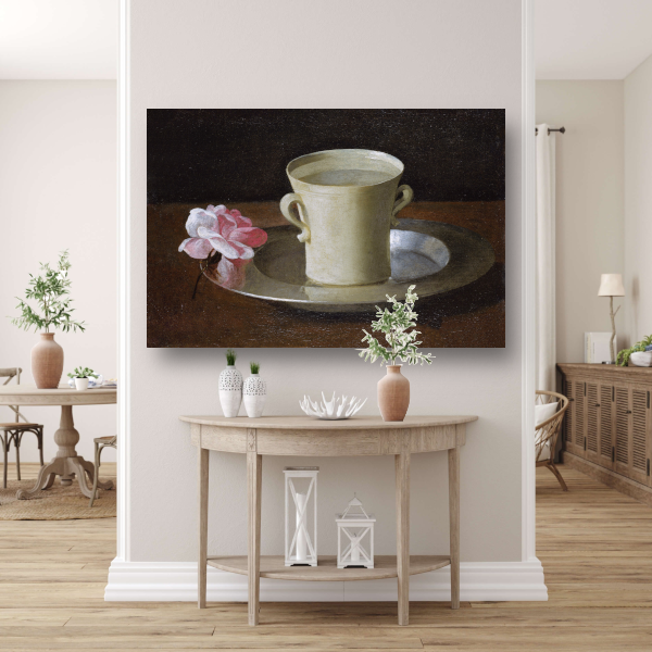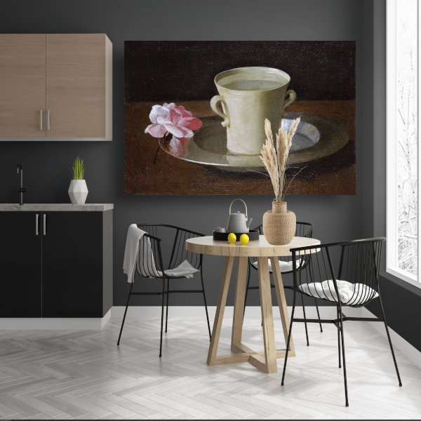Kopje water en een roos op een zilveren bord - Francisco de Zurbarán poster