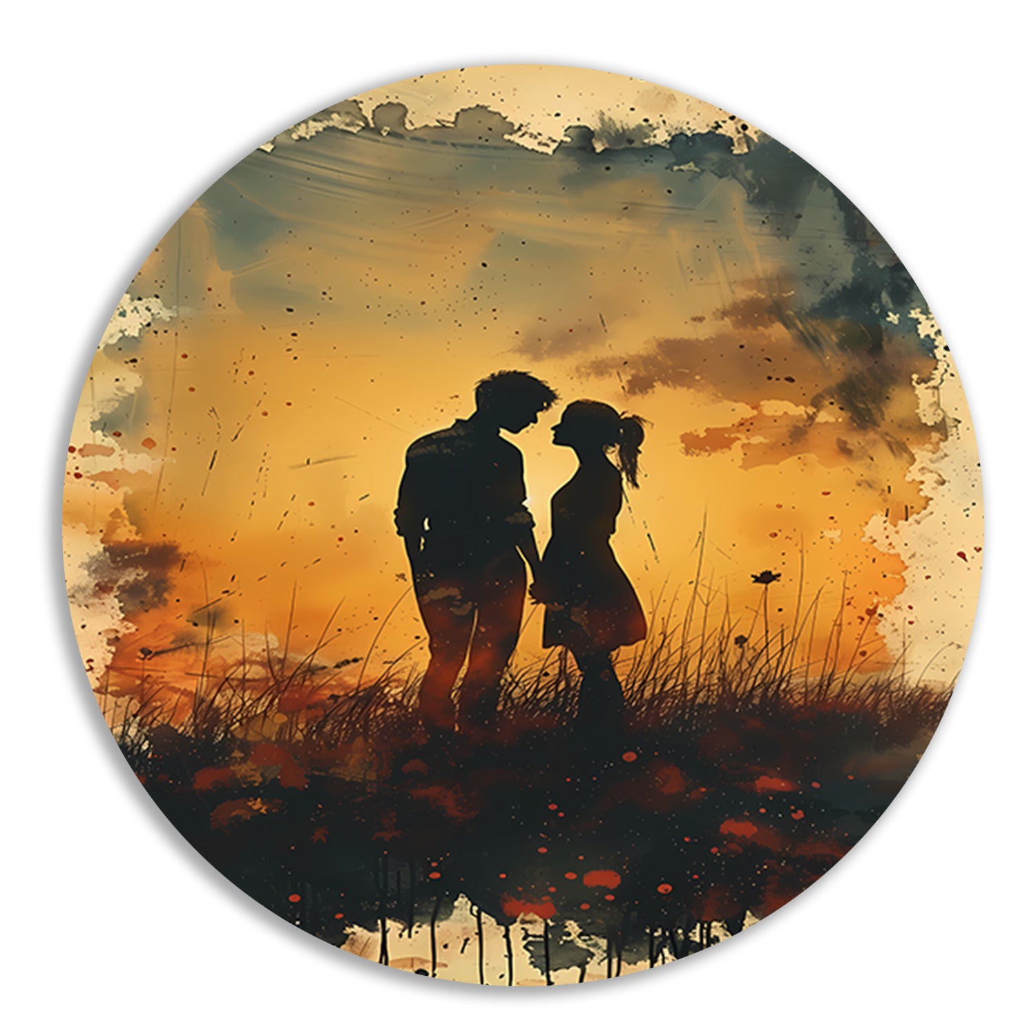 Koppel tegen een Kleurrijk zonsondergang aluminium muurcirkel