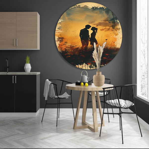 De muurcirkel is verkrijgbaar in diverse maten, zodat je altijd een formaat kunt kiezen dat perfect past bij jouw interieur. Voeg dit prachtige kunstwerk toe aan je huis en geniet elke dag van de kleurrijke zonsondergang met dit romantische koppel. Maak van je muur een echte eyecatcher met deze schitterende muurcirkel.