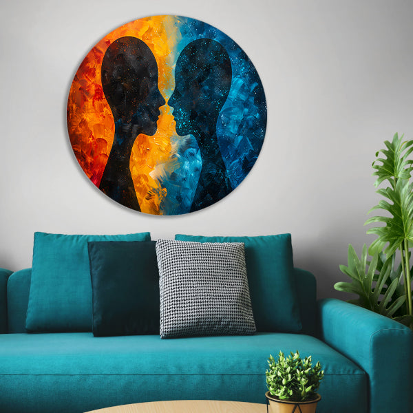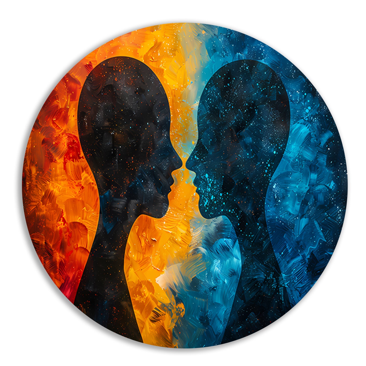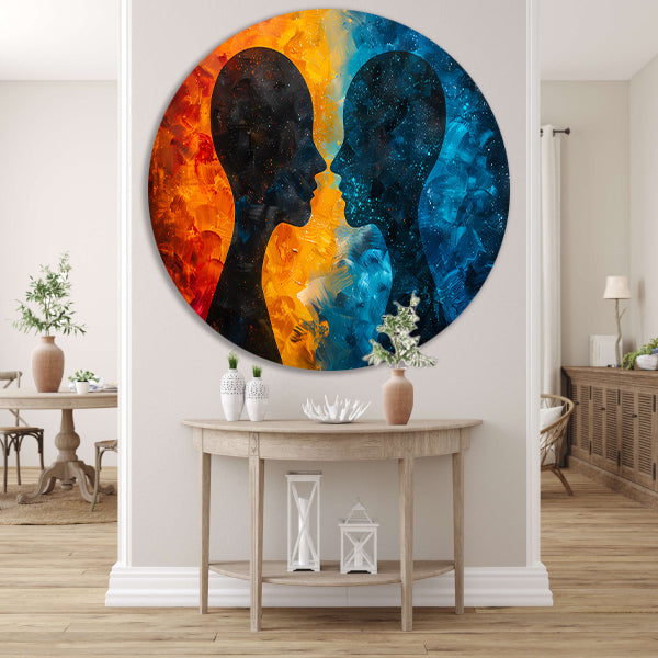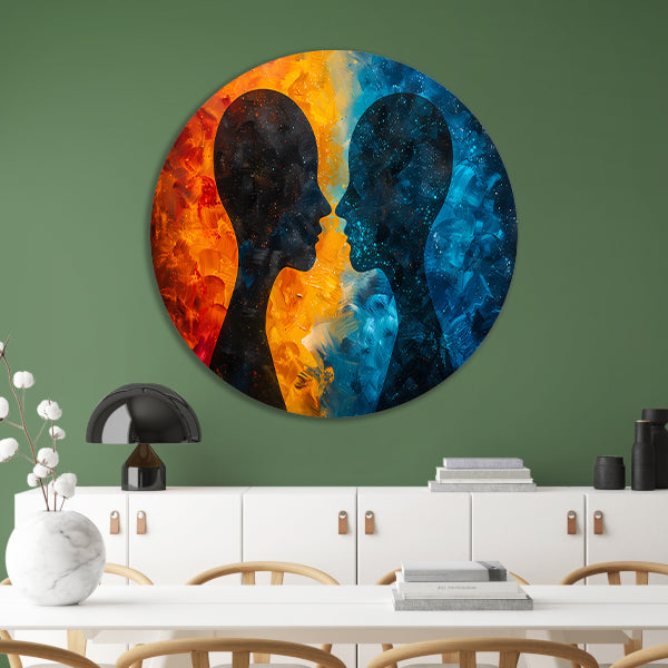 Kosmische Dialoog Tussen Aarde en Ruimte aluminium muurcirkel