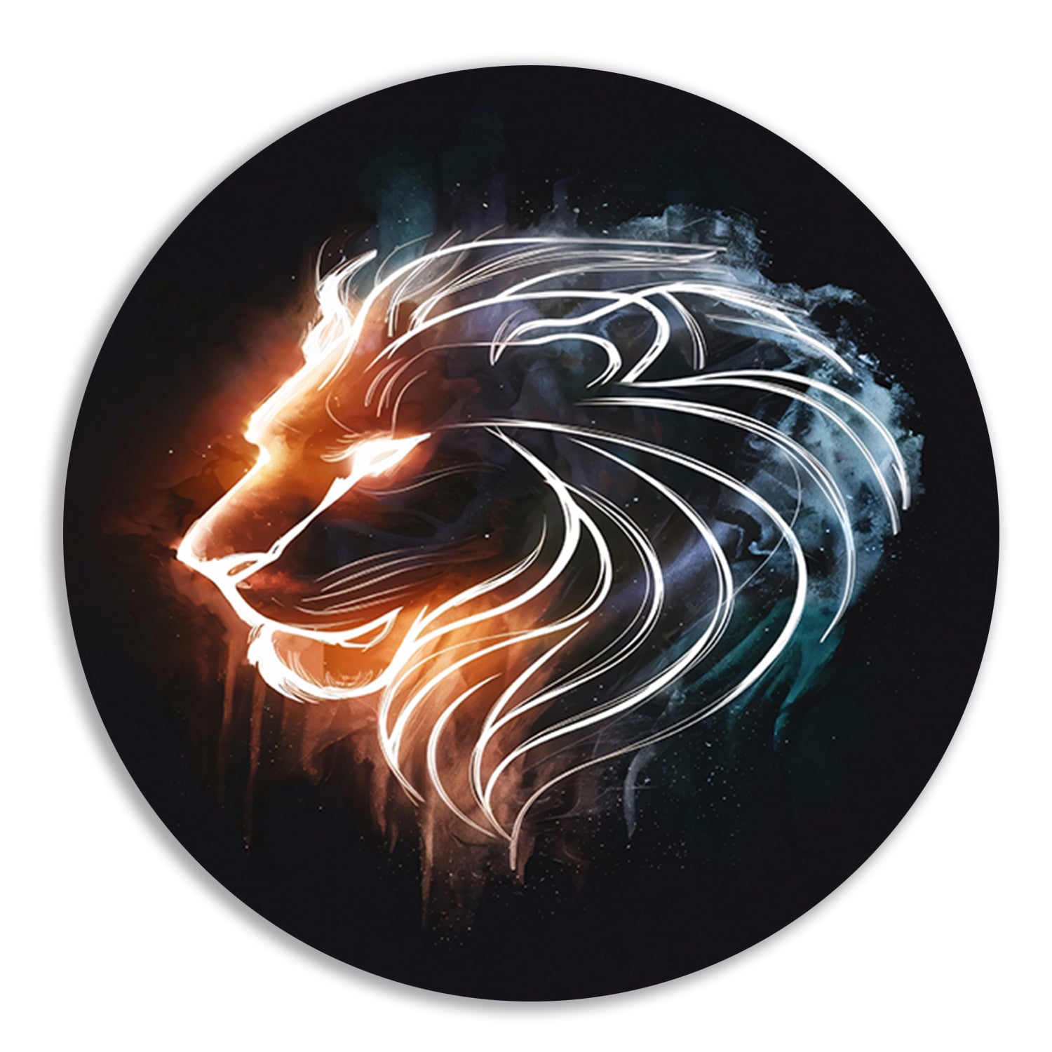 Kosmische Leeuw in Sterrennevel Lijntekening aluminium muurcirkel