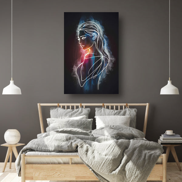 Kosmische lijnkunst portret van vrouw canvas met baklijst