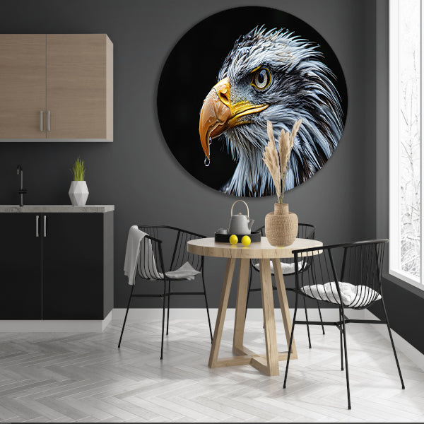 De Krachtige Kale Adelaar is afgebeeld in prachtige details op de muurcirkel, waardoor het een echte blikvanger is in elke ruimte. Door te kiezen uit meerdere formaten kun je de muurcirkel perfect afstemmen op jouw interieur.