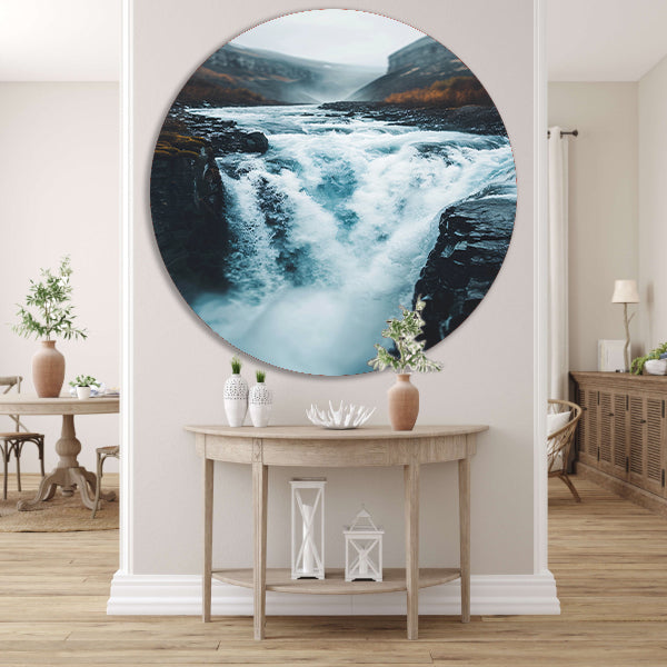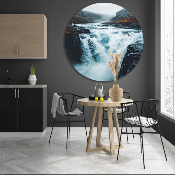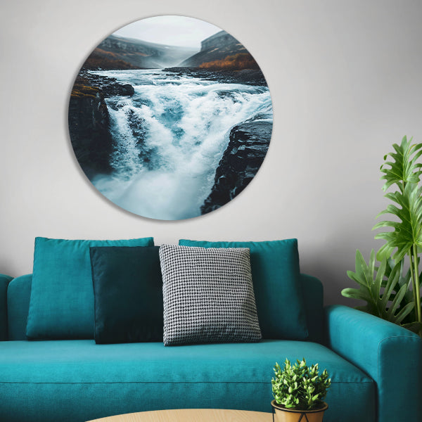 Krachtige Waterval in Ruige Natuur aluminium muurcirkel