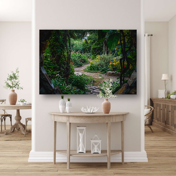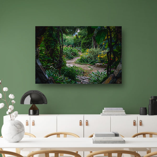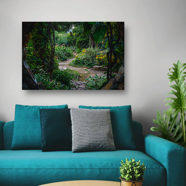 Kronkelend Pad in Bloementuin canvas