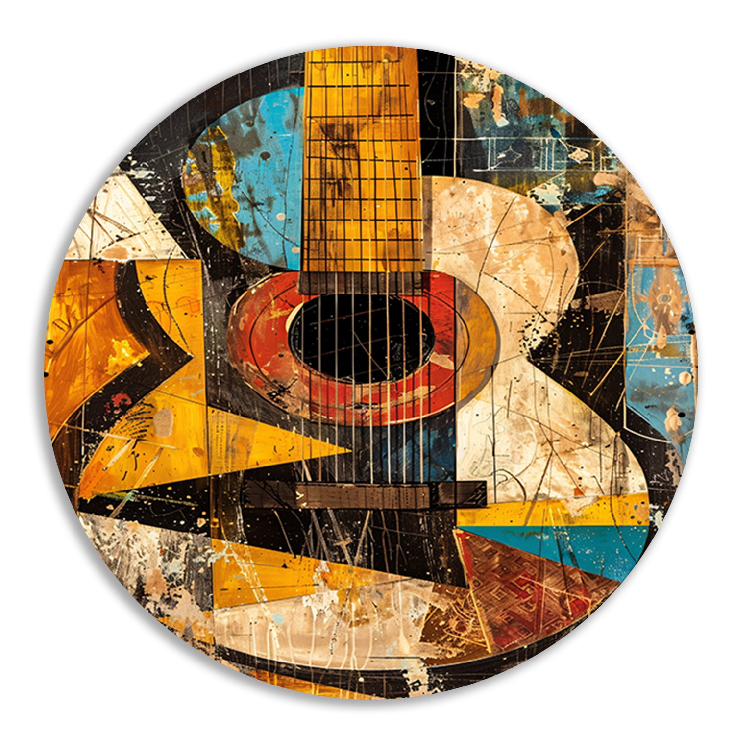Kubistische Gitaar in Kleur aluminium muurcirkel
