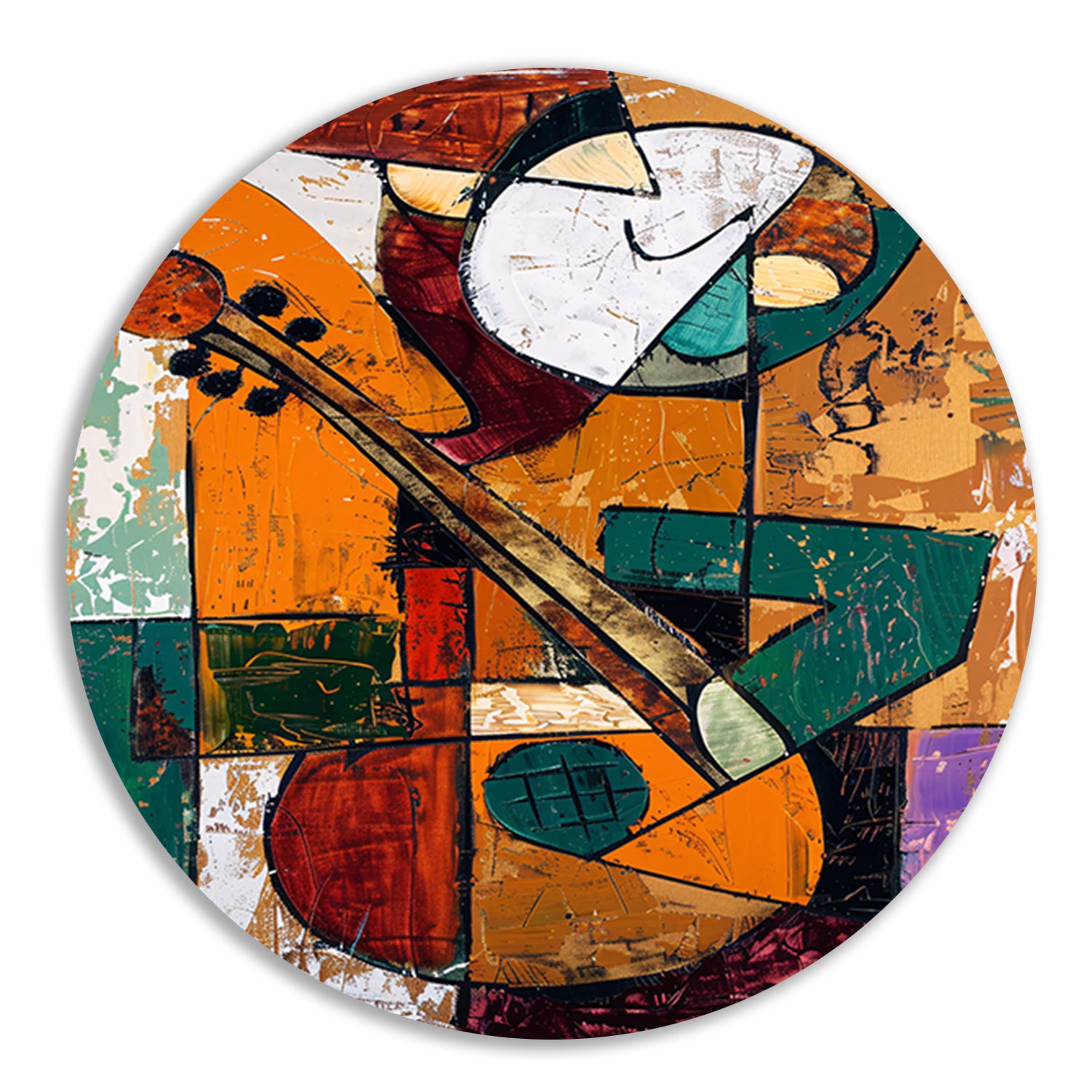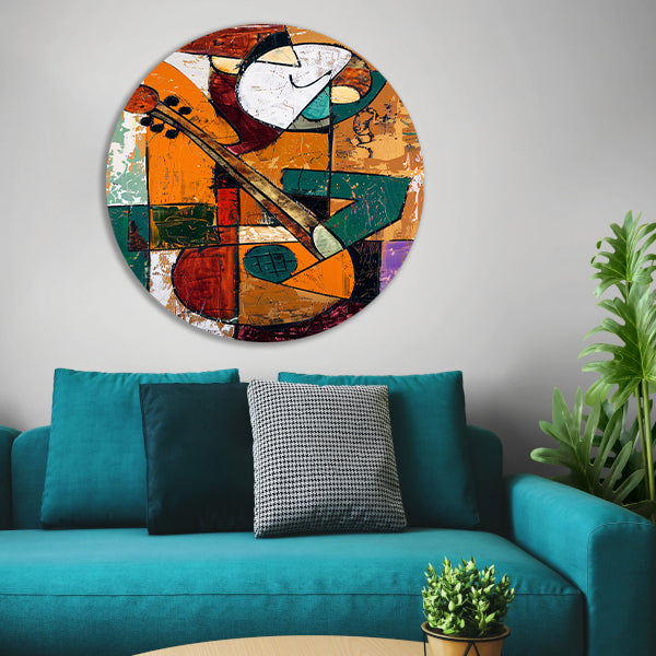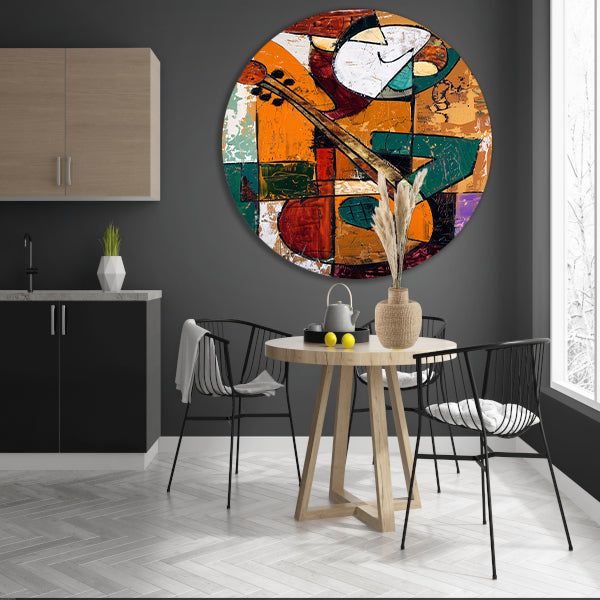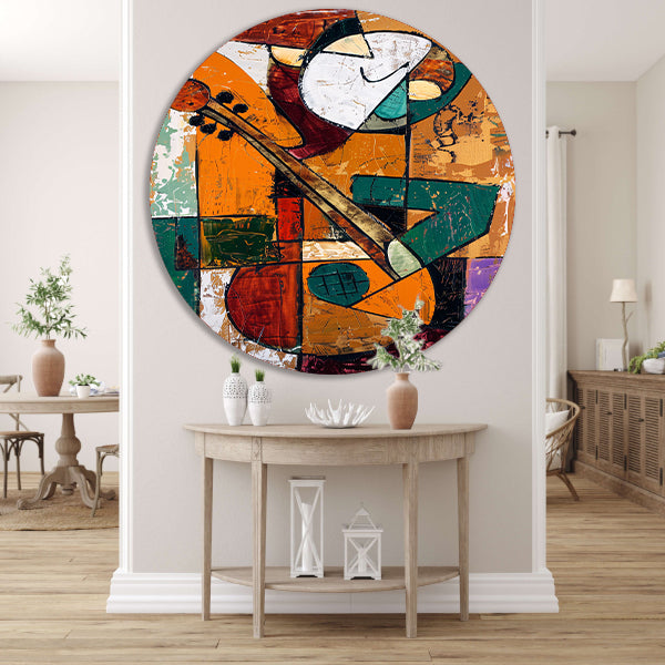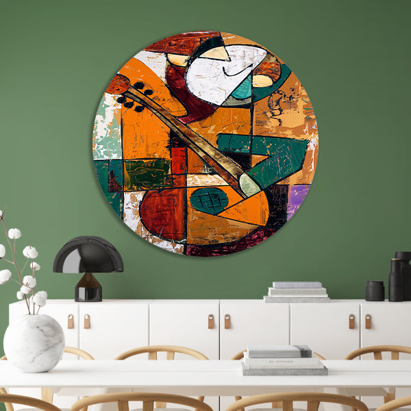 Kubistische Gitaarspeler in Levendige Kleuren aluminium muurcirkel