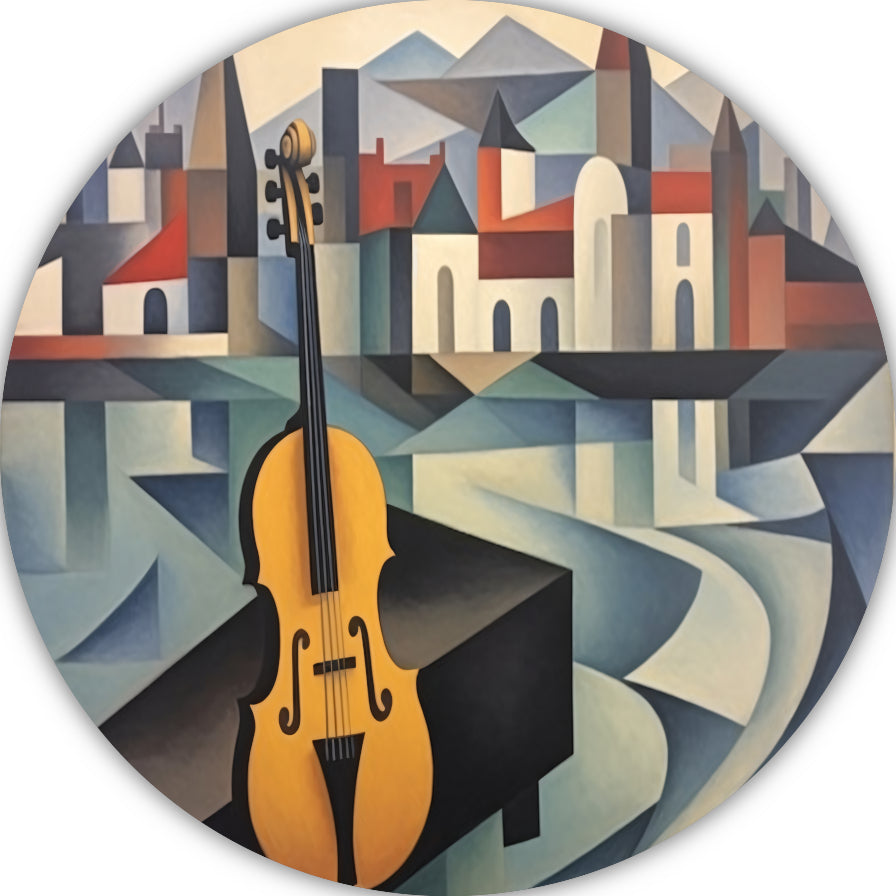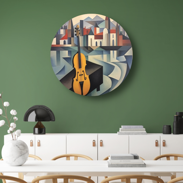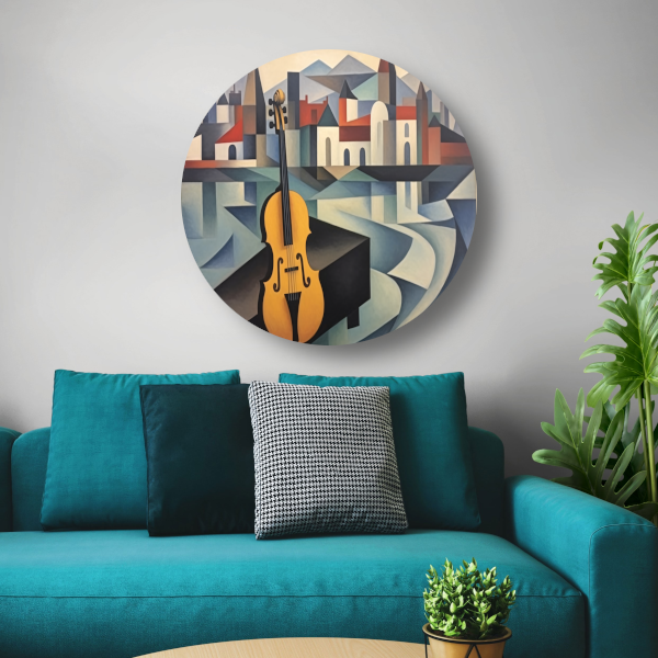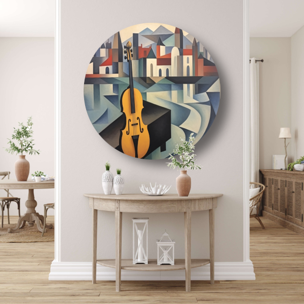 Kubistische interpretatie van stad en muziek aluminium muurcirkel